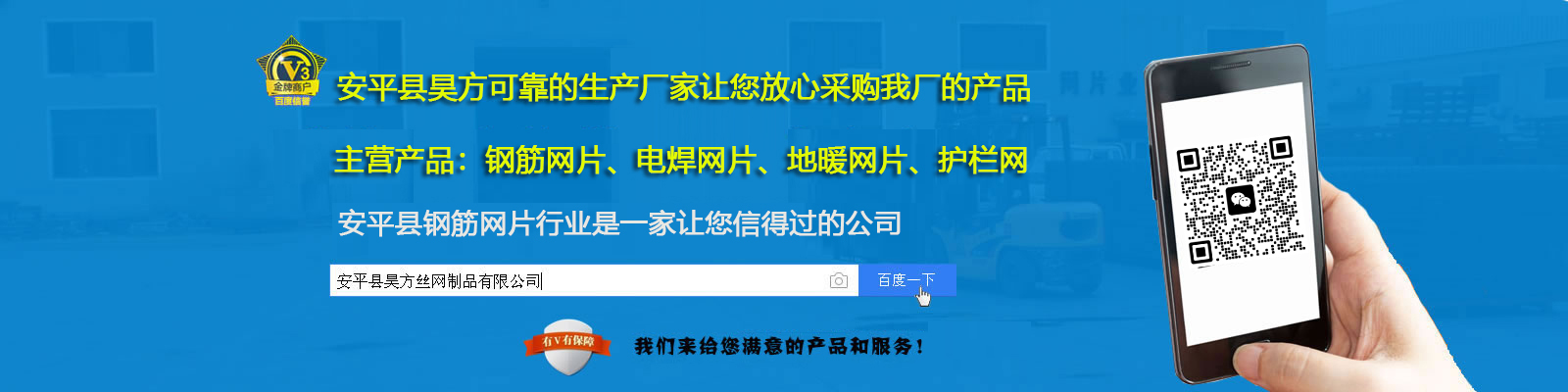 安平縣坤鼎絲網(wǎng)制品有限公司(原安平縣鑫平護(hù)欄網(wǎng)廠)位于安平縣油子開(kāi)發(fā)區(qū),是專業(yè)生產(chǎn)各種公路護(hù)欄網(wǎng)、高速公路護(hù)欄網(wǎng)、小區(qū)護(hù)欄網(wǎng)、金屬焊接防盜網(wǎng)、鐵路隔離防護(hù)網(wǎng)、防眩網(wǎng)、防拋網(wǎng)、機(jī)場(chǎng)隔離網(wǎng)、圍網(wǎng)、圍欄網(wǎng)、場(chǎng)地圍網(wǎng)、體育圍網(wǎng)、運(yùn)動(dòng)場(chǎng)圍網(wǎng)、小區(qū)圍網(wǎng)、生活區(qū)圍網(wǎng)、倉(cāng)庫(kù)隔離網(wǎng)、圍山網(wǎng)、圍墻網(wǎng)、建筑用網(wǎng)的專業(yè)廠家。 本廠以“質(zhì)量求生存,客戶是上帝,交貨及時(shí),價(jià)格合理,服務(wù)周到”的宗旨為廣大客戶服務(wù);本著“質(zhì)量求生存,信譽(yù)謀發(fā)展”的生產(chǎn)原則,贏得了廣大新老客戶的好評(píng)。多年來(lái),我們憑借吸納進(jìn)的技術(shù)、過(guò)硬的質(zhì)量、良好的信譽(yù)和服務(wù)、與多家客商建立了穩(wěn)固的供貨關(guān)系,客戶遍及全國(guó)各地和地區(qū)。經(jīng)過(guò)多年的發(fā)展,我廠一貫堅(jiān)持以科學(xué)的管理和嚴(yán)格的檢驗(yàn)制度,確保防護(hù)網(wǎng)產(chǎn)品的合格率,并以可靠的信譽(yù)和服務(wù),贏得了新老客戶的信譽(yù)和贊譽(yù)。...